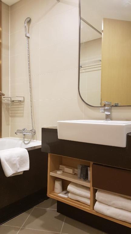 Infront of migliore mall, there is a tunnel that links to opposite DDP whereby you can take train. Bus stop is located a minute walk away. You can take airport bus from/to Incheon. Bus is more convenient and less walking and climbing of stairs required. There are alot of malls open until 5am here. Good for midnight shopping. There are also many eateries right outside the hotel. I have no issue with the room cleanliness. It's generally quite clean. The room is not very sound proof hence there may be minor noise in the morning. Probably due to cleaners cleaning the room. It's a pleasant stay and most importantly, very value for money !